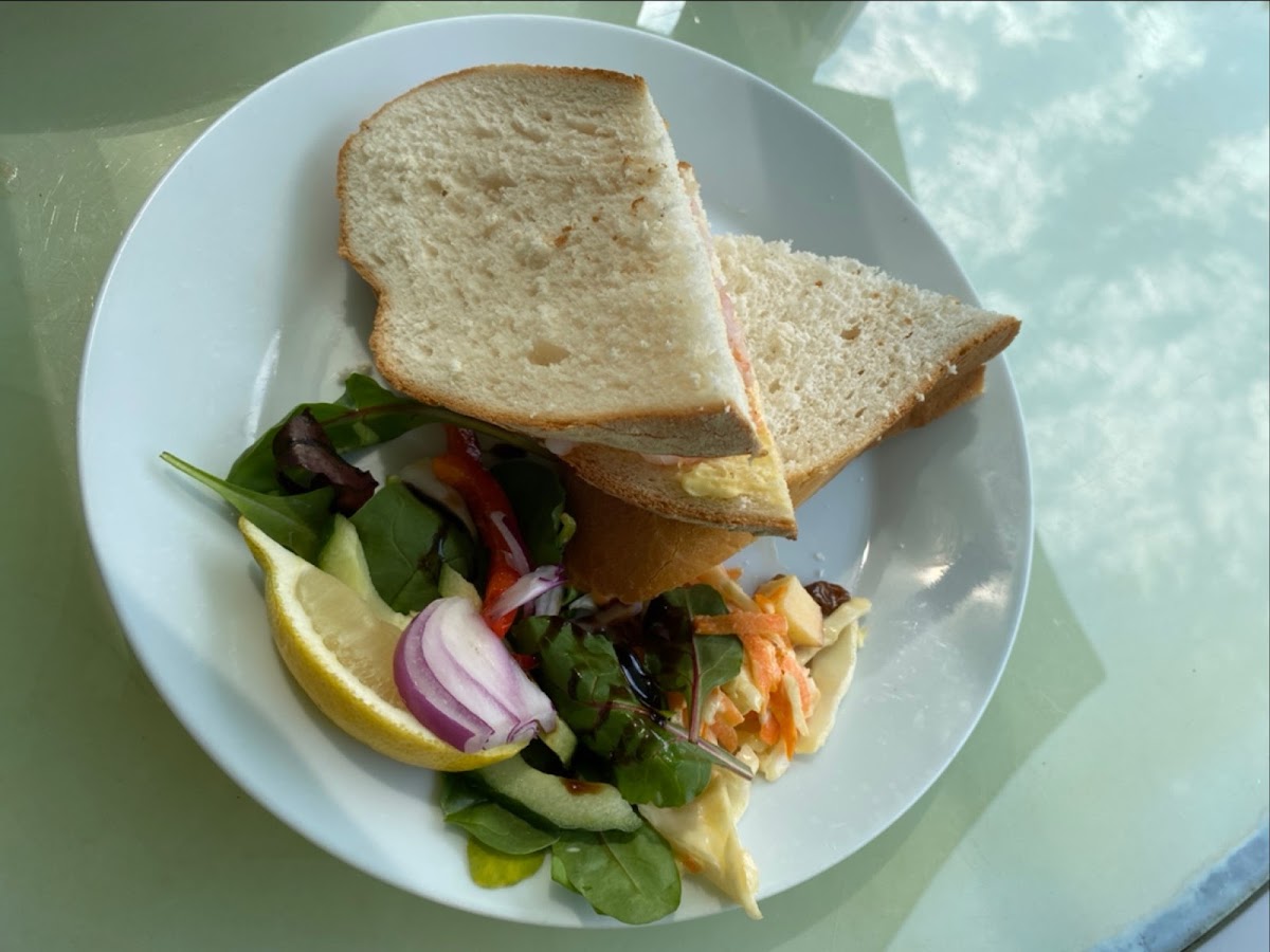 Lovely quaint cafe on the farm 5 min drive from crazy golf we popped I for lunch Which was lovely served efficiently lovely staff all freshly cooked the highlight for me was the green coconut cake should be labelled diabetic friendly this was a real treat for me I could see it was a very light fluffy sponge I love coconut & there was cream & fruit was absolutely wonderful I highly recommend this dessert compliments to whomever baked it please keep it on your menu & do not change the recipe I will be coming back you can also reserve afternoon tea & book private parties etc lovely outdoors section and also accessories for ladies section gloves scarves gift sets loose scarves purses tops jewellery very very lovely cafe thank you
